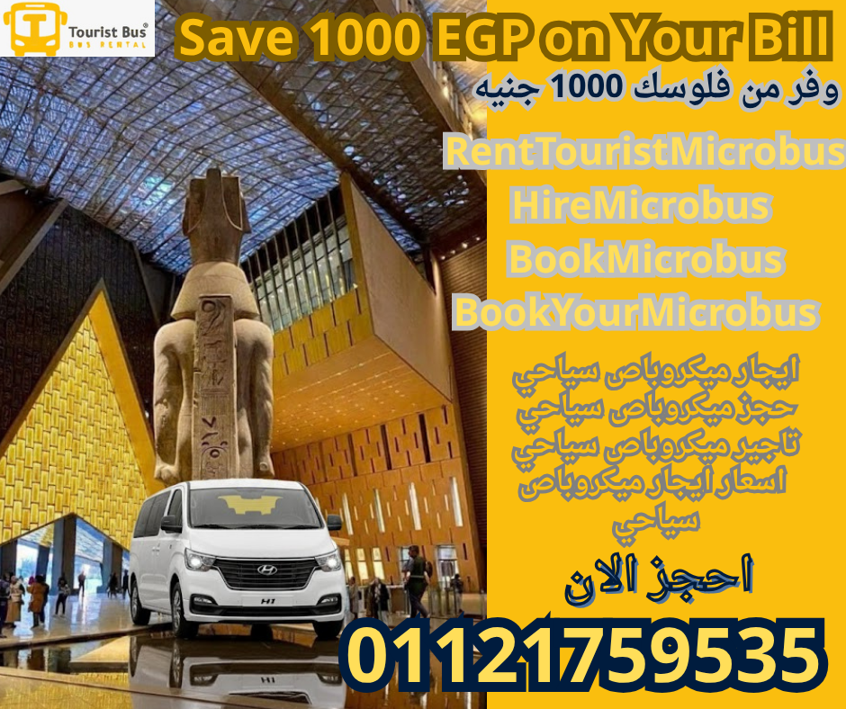 بمناسبة افتتاح المتحف المصري الكبير، ايجار ميكروباص سياحي قمنا بإطلاق باقة خاصة صُممت لتلبية كافة احتياجات مجموعتك. أولاً، تشتمل هذه الباقة على تأجير ميكروباص سياحي حديث ومريح ليوم كامل.